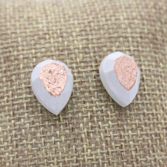 Die wunderschönen Ohrstecker aus Keramik in Tropfenform gibt es mit einer Veredelung in silber, kupfer oder gold.