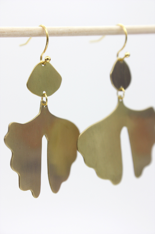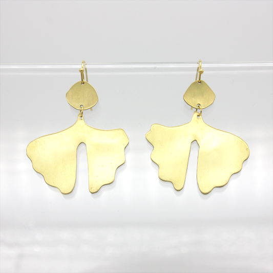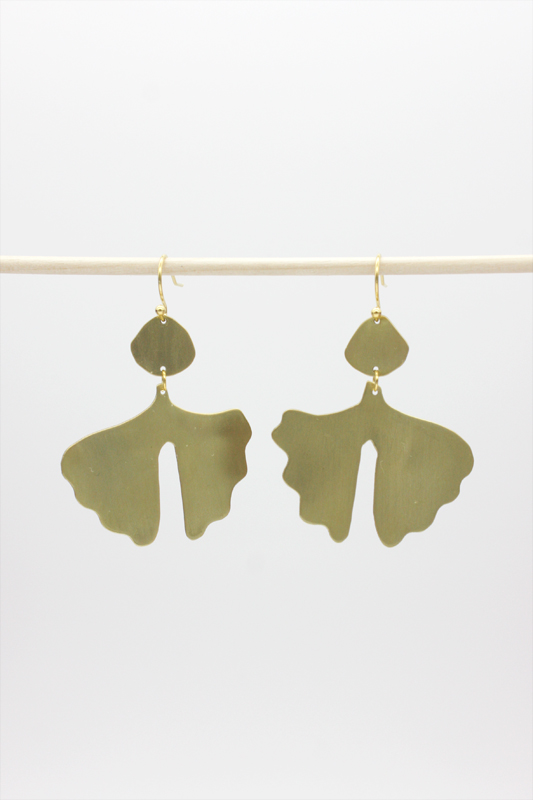 Ein echter Hingucker sind diese großen handgesägter Blattohrhänger, deren Form an ein Gingkoblatt erinnert.