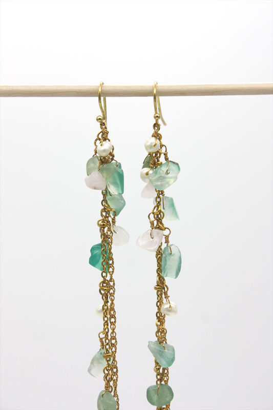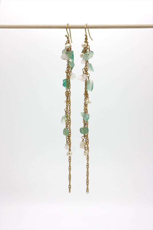Material: Ohrhaken und Kette aus Edelstahl in gold, Süßwasserperlen, Halbedelsteine